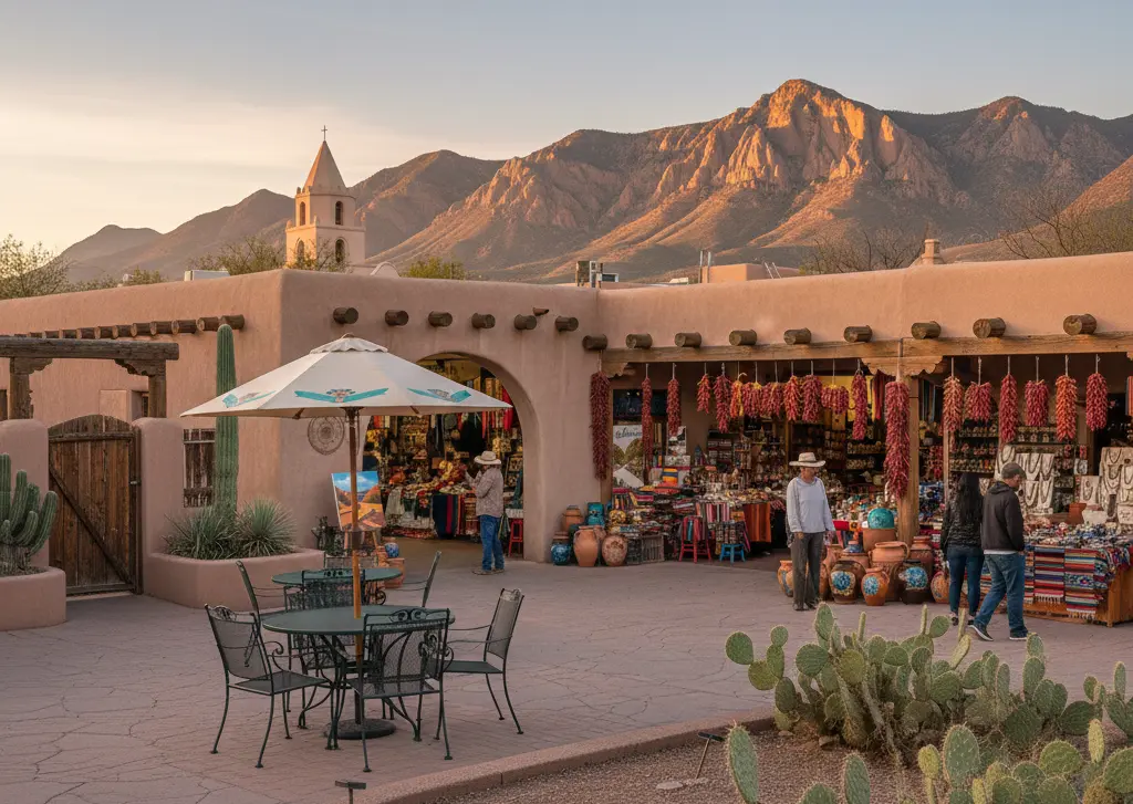 At the center stands the iconic San Felipe de Neri Church, one of the oldest surviving buildings in the city. Surrounding the plaza, you’ll find local artisan shops, Native American jewelry vendors, art galleries, museums, and authentic New Mexican restaurants.